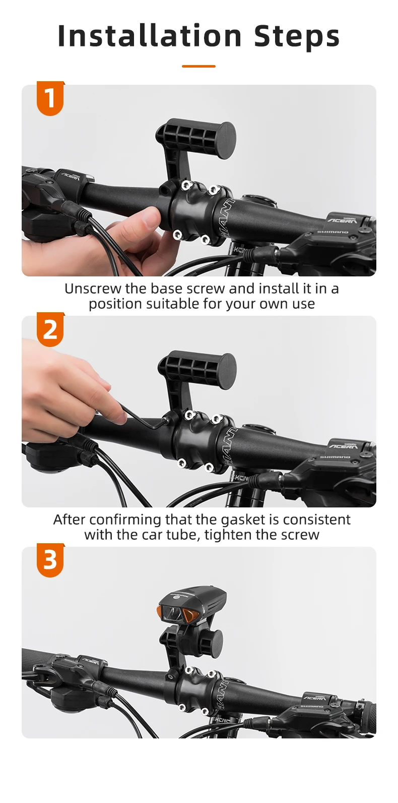 Для руля велосипеда, чтобы добавить дополнительное пространство для хранения ваших велосипедных огней, GPS или телефона и т. Д. Пластиковый корпус, ультра-светильник. Зафиксирован диаметр колонки 25 мм. Шестигранная отвертка, Легко загружается и разгружается.