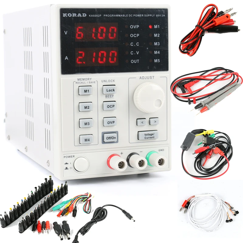 Название продукта программируемый источник питания постоянного тока Описание товара Особенности Программируемая мощность Высокая точность и разрешение 10 мВ/1 мА Низкий уровень шума и пульсации CV / CC заданный режим напряжения и постоянного тока Высокая надежность OCP, OVP, защита любого набора Встроенный набор хранящихся параметров Управление выходным переключателем Функция питания и памяти Блокировка клавиатуры для предотвращения неправильного использования Хранение данных через USB и функции автоматического управления Дополнительная квота RS232, интерфейс USB Легко заменяет традиционное цифровое питание Точно генерирует необходимое напряжение и ток Блок питания серии KA для обеспечения разрешения из широкого диапазона выходного напряжения 30 В-60 в 10 мВ и 10 мА Профессиональный дизайн блока питания с интуитивно понятной работоспособностью Простое и понятное управление, быстрый и точный выбор напряжения и тока 5 программируемых пользователем предустановленных настроек Просто нажмите кнопку, чтобы отозвать и сохранить зону, чтобы открыть пользователя для хранения данных и сохранения пользовательских настроек Для предотвращения повреждения нагрузки Числовая Защита от перенапряжения и перегрузки по току и может быть установлена для предотвращения превышения порога регулятора напряжения. Кнопки блокировки панели, функция блокировки клавиатуры для предотвращения нежелательных результатов при тестировании клавиш. Приложения Исследования и разработки, контроль и тестирование качества, автоматизированное тестирование производственной линии, школьных лабораторий и техническое обслуживание. Технические параметры Диапазон напряжения/тока 0-30 в 0-60 в/0-2A 0-3A 0-5A Регулирование нагрузки ≤ 0.01% + 2 мВ напряжение/ток ≤ 0.1% + 5 мА Линейный регулятор ≤ 0.01% + 3 мВ напряжение/ток ≤ 0.1% + 3 мА Установить разрешение Напряжение: 10мв/ток 1мА Точность настройки (25 + - 5) ≤ 0.5% + 20 мВ напряжение/ток ≤ 0.5% + 10 мА Пульсация (20 Гц-20 м) Напряжение ≤ 2 мвмс/ток: ≤ 5 мвмс Коэффициент температуры ≤ 100ppm + 10 мВ напряжение/ток ≤ 100ppm + 5 mA Разрешение считывания Напряжение 10мв/ток: 1мА Коэффициент возврата температуры Напряжение ≤ 100ppm + 10 мВ/ток ≤ 100ppm + 5 mA Время реакции (10% от номинальной нагрузки) Напряжение ≤ 100 мс/ток ≤ 100 мс Рабочая среда Для использования в помещении Высота ≤ 2000 м Температура окружающей среды 0 ~ 40 ≤ 80% относительной влажности Интерфейс Дополнительные интерфейсы RS232, USB Фитинг Руководство, шнур питания (1,2 м), USB-кабель (1,2 м) Вес и размеры 4,3 кг/110 (Ш) * 156 (В) * 260 (г) Среда хранения Температура окружающей среды-10 - 70 ≤ 70% относительной влажности