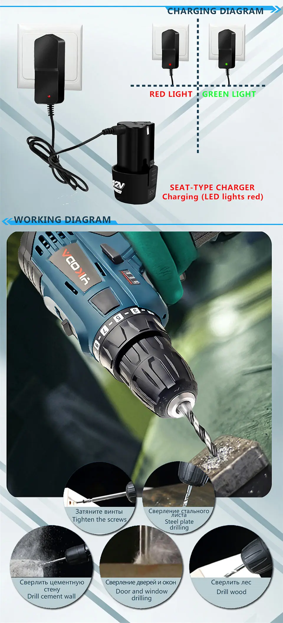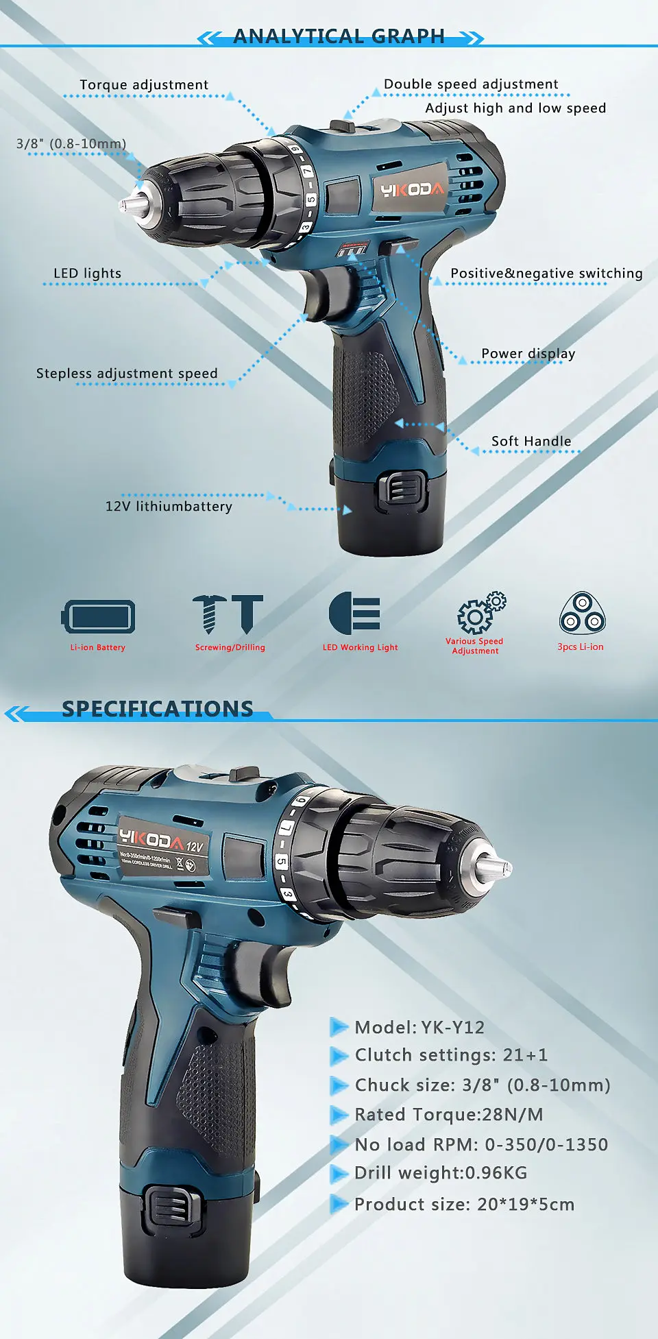 YIKODA 12 В Электрическая отвертка Parafusadeira перезаряжаемая литиевая батарея Многофункциональная Беспроводная электрическая дрель электроинструменты