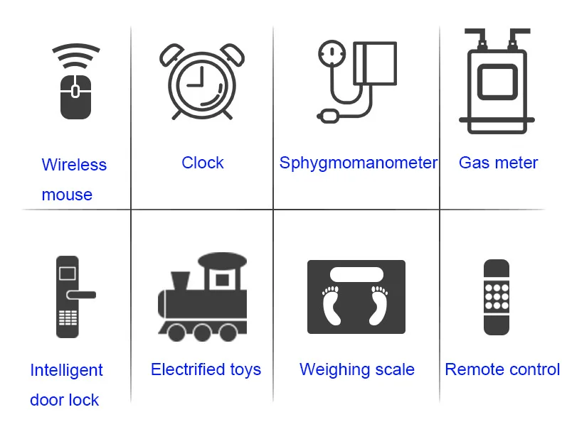 Применение:MP3, камера, вспышка, бритвы, электрические игрушки, cd-проигрыватель, пульт дистанционного управления, беспроводная мышь, клавиатура, walkman и так далее.