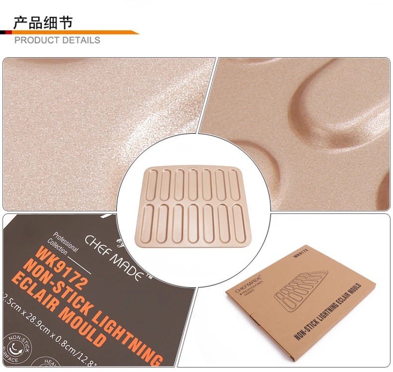 Название продукта: золотой антипригарный слоеный плесень Размер: 32,5x28,9x0,6см Материал: углеродистая сталь + антипригарное покрытие Термостойкость: 230 градусов Цельсия Вес: 725 г Преимущества продукта: высокая термостойкость, не легко деформируется, прочный