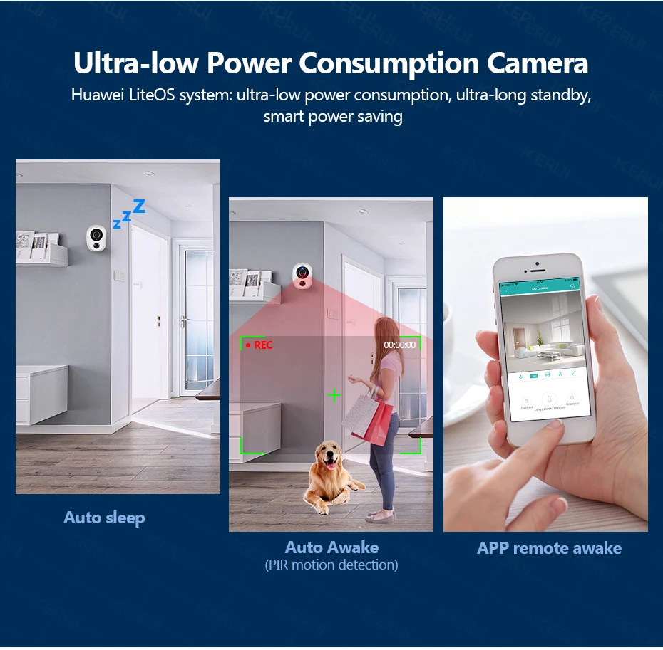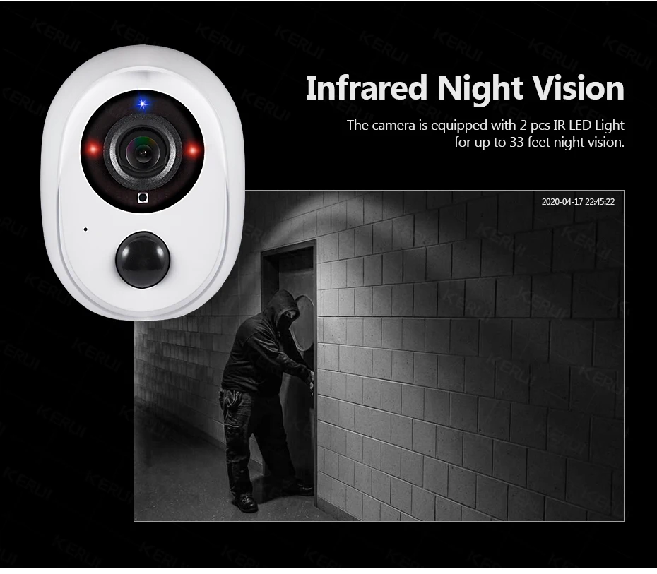 KERUI IP WIFI камера Встроенный PIR человека инфракрасного зондирования, автоматически видео, когда область наблюдения обнаруживает, что кто-то проходит, и отправить аномальную информацию тревоги на мобильный телефон.