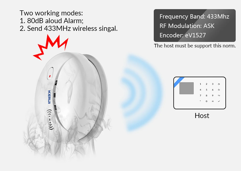 Советы: этот детектор дыма может работать с большинством систем сигнализации (не включая посылка).