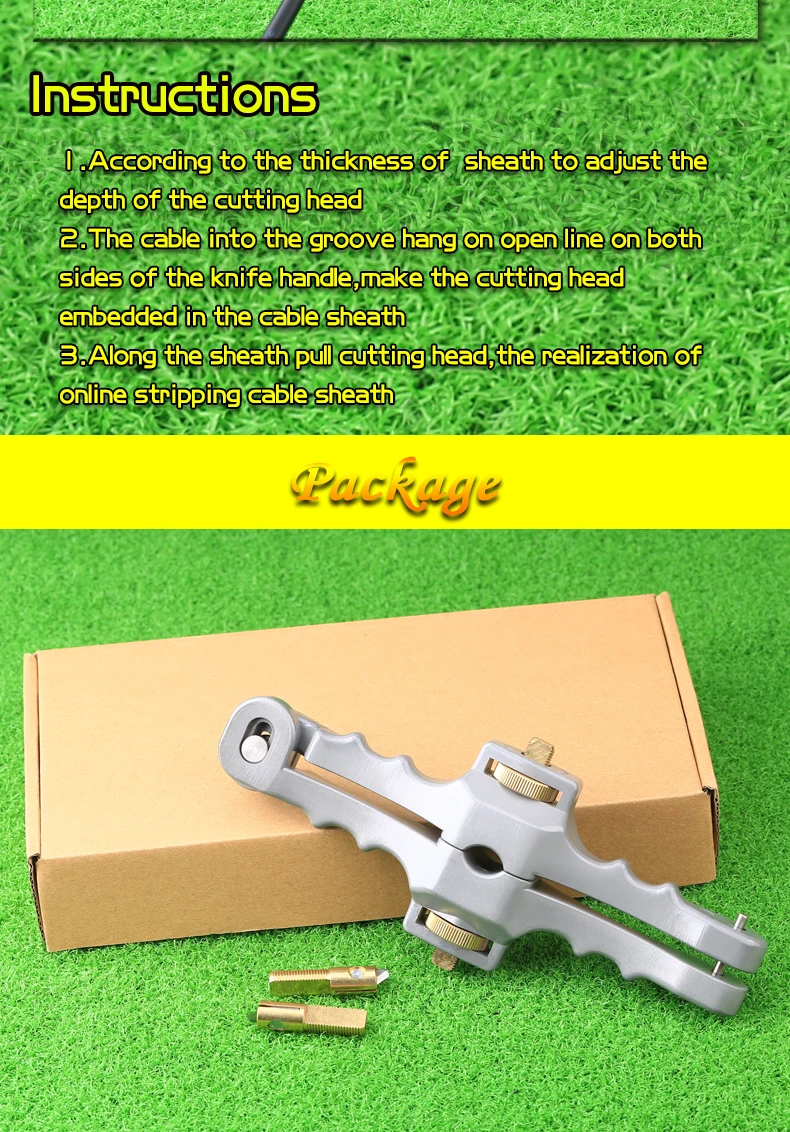 Введение: 1. Онлайн зачистки алюминиево-полиэтиленовая оболочка, бронированная сталь и неметаллический элемент прочности внешняя оболочка кабеля оболочки. 2. Лезвие изготовлено из высококачественных материалов, режет кабель куртки больше усилий. 3. Глубина резки лезвия регулируется, может отвечать на различную толщину оболочки кабеля. 4. По сравнению с аналогичными продуктами, операция более простая, быстрая и удобная. Применение: В соответствии с толщиной оболочки, регулирующей глубину лезвия, чтобы сделать онлайн открытый кабельный нож установить в круглое отверстие в оболочке кабеля, оболочка кабеля режущего знака, захватите ручки с обеих сторон, чтобы открыть кабельный резак, таким образом, головка встроена в кабельную оболочку, потянув лезвие вдоль оболочки, чтобы достичь онлайн-оболочки кабеля зачистки. Особенности: Модель: SI-01 Применимый диаметр кабеля: 10-25 мм Размер: 208*88*36 мм Назначение: онлайн продольное открытие кабеля Применимые типы кабелей: Полиэтиленовая клейкая оболочка, армированный стальной армирующий элемент и неметаллический наружный кабель оболочки и т. Д. Размеры: