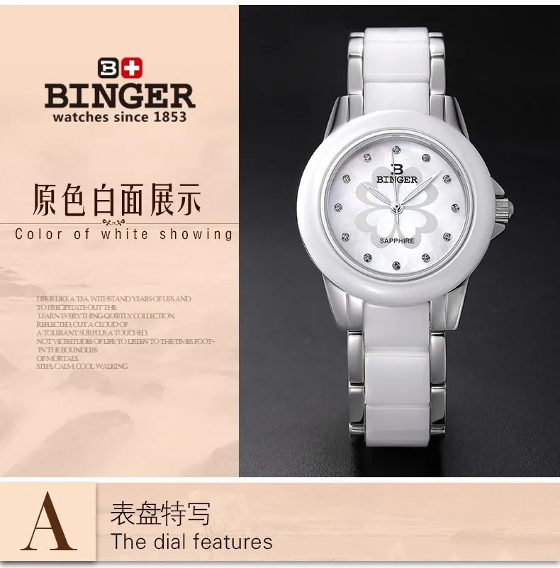 Бренд: BINGER Механизм: кварцевый механизм Состав металла:Керамика Кристалл: сапфир Размеры чехла: диаметр 25 мм Тип ремешка: вольфрамКерамика Посылка: накрыть пузырчатой пленкой и упаковать в подарочную коробку Бингер. Вместе с инструкцией. Внешняя коробка также покрыта пузырчатой пленкой. Мы обещаем, что часы не будут повреждены при транспортировке 12-месячная гарантия