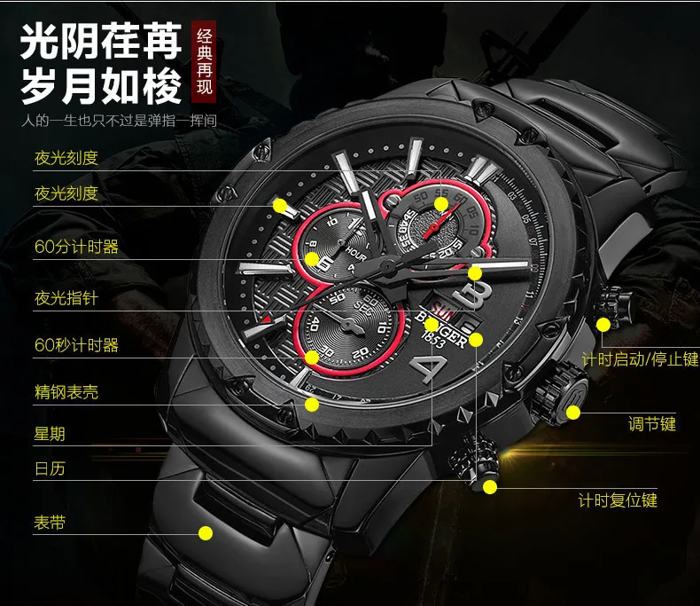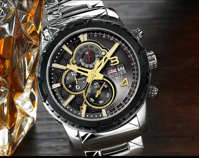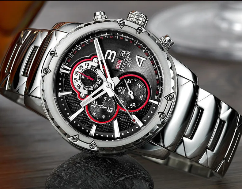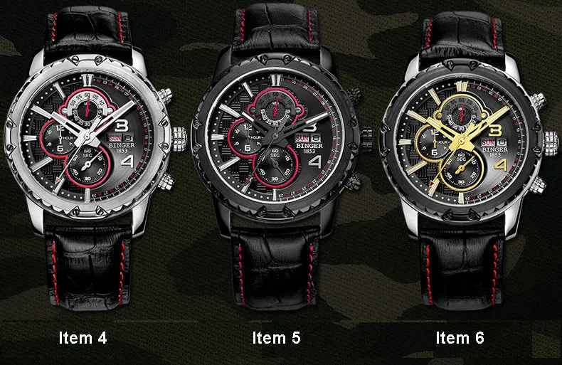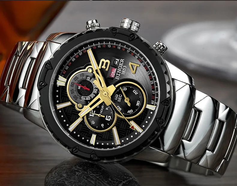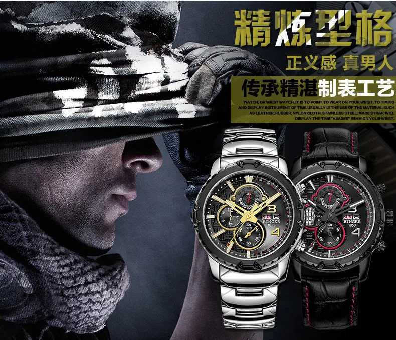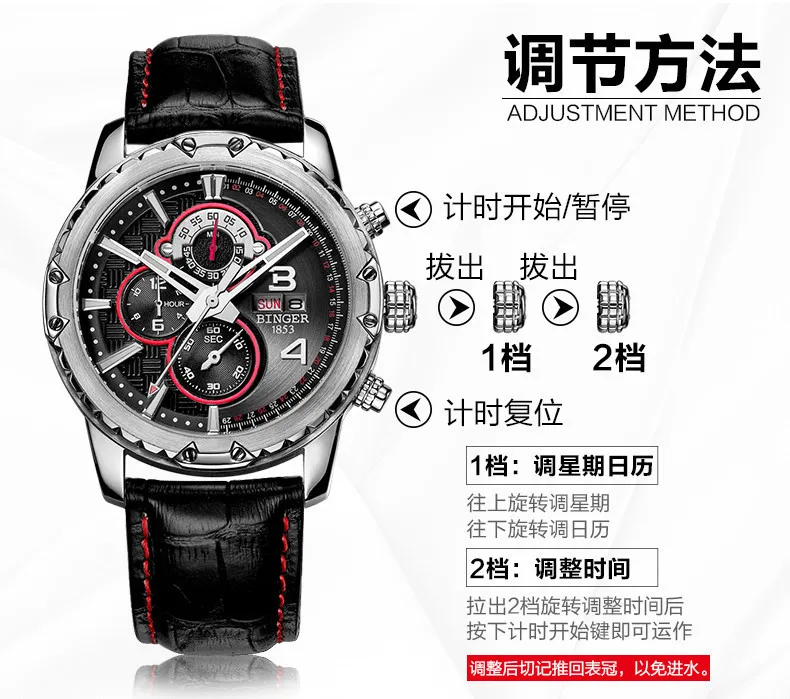 Бренд: BINGER Движение:Кварцевый механизм Состав металла:Нержавеющая сталь 316L Кристалл: сапфир Размеры чехла: 42 мм диам Тип ремешка:Нержавеющая сталь 316L/натуральная кожа Посылка: Накрыть пузырчатой пленкой и упаковать в подарочную коробку бингера. Вместе с английской инструкцией. Внешняя коробка также покрыта пузырчатой пленкой. Мы обещаем, что часы не будут повреждены при транспортировке Гарантия на один год