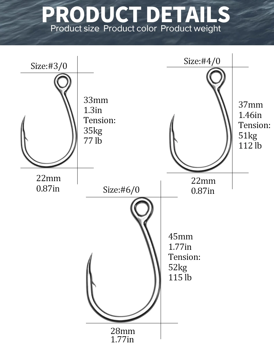 Особенности:Temper-обработанныйВысокоуглеродистая стальМощная и острая точкаРазмер: 3/0, напряжение: 35,3 кг, 1 упаковка = 5 шт.;Размер: 4/0, напряжение: 42,7 кг, 1 упаковка = 5 шт.