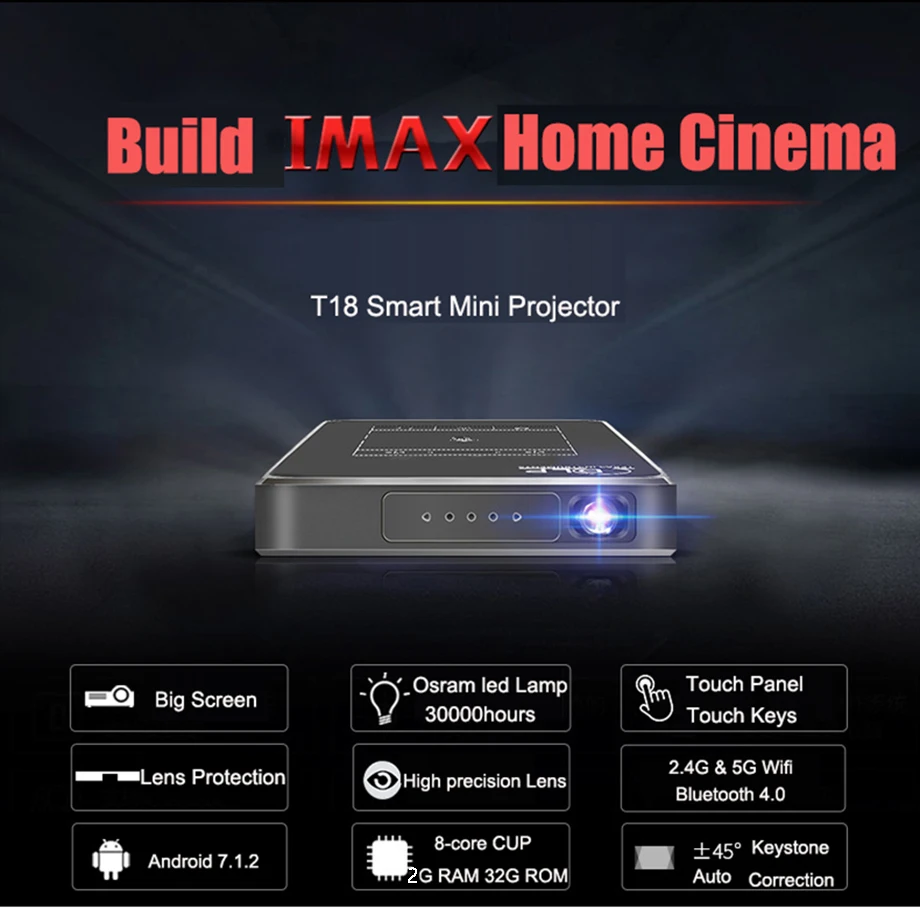 Новейший умный проектор для домашнего кинотеатра, Android 7.1.2, 2G RAM, Full HD 1080P, Blutooth AirPlay, Miracast AC3