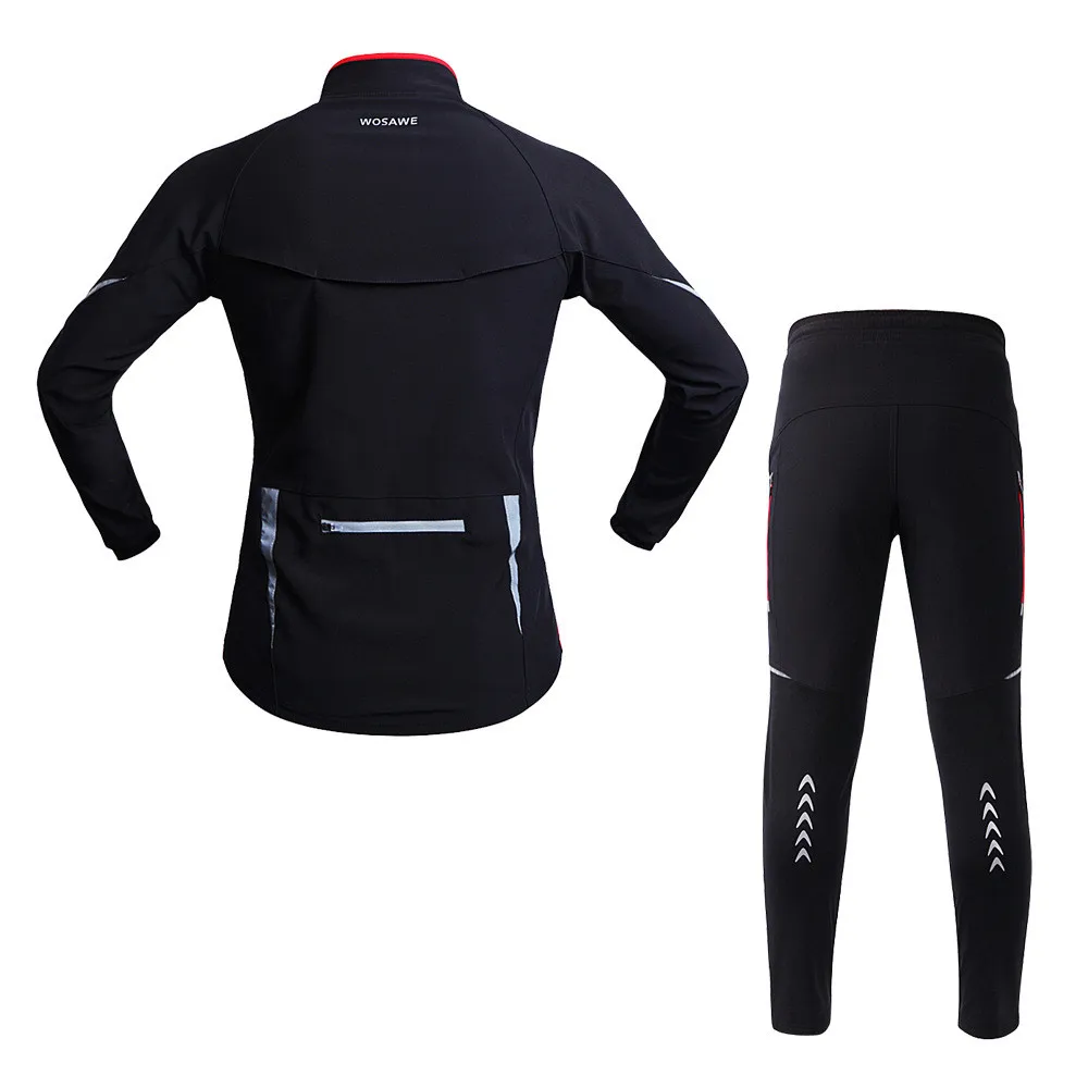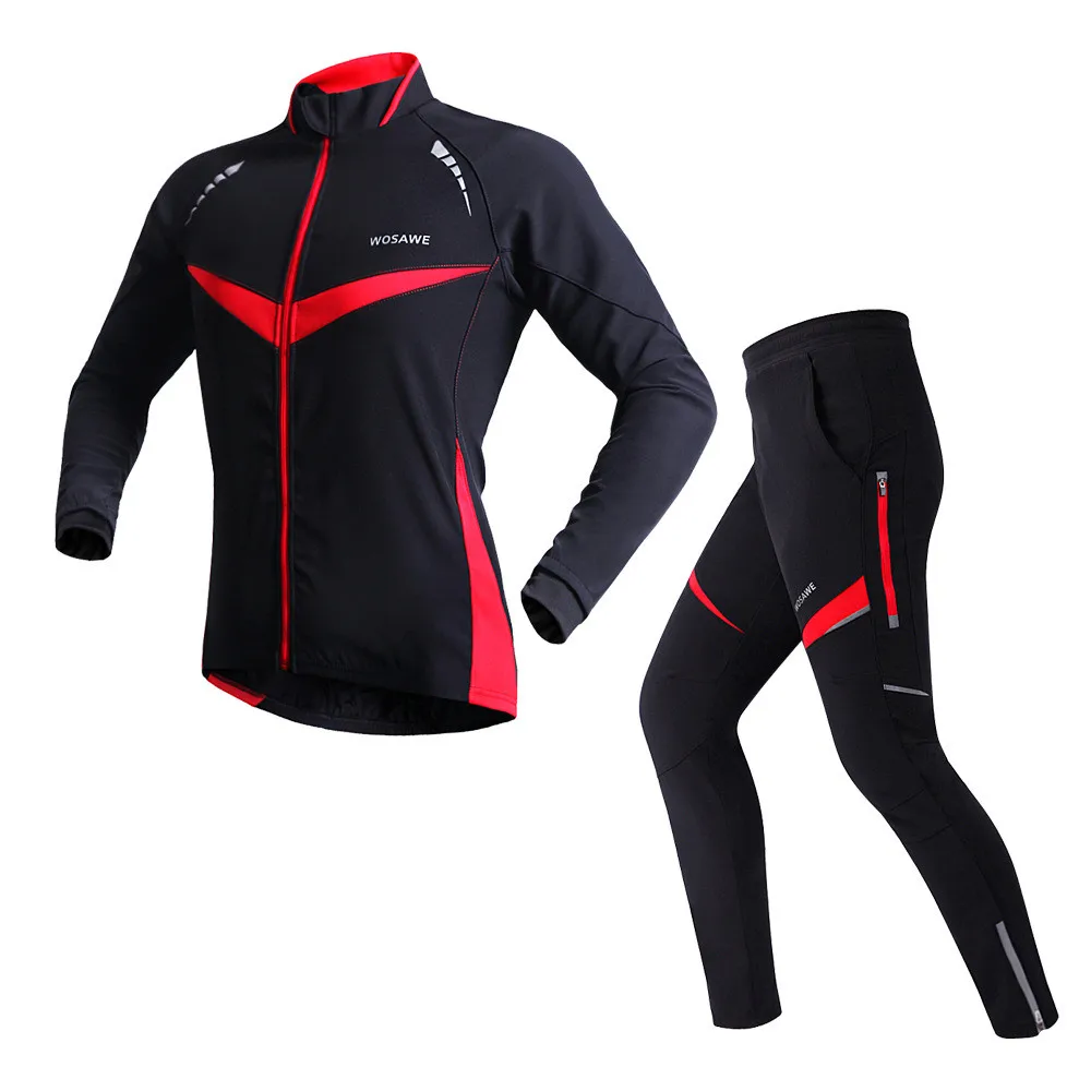 Название: ветрозащитная спортивная куртка для велоспорта; Комплект со штанами Пол: унисекс Цвет: черный с зеленым, черный с красным Размер: S M L XL XXL Вес: 930 г (XXL) Материал: "Джерси; 100% полиэстер, брюки; 100% полиэстер" Применимо: Велоспорт, горный велосипед, Спорт на открытом воздухе Посылка: полиэтиленовый пакет Прилагается: бирка