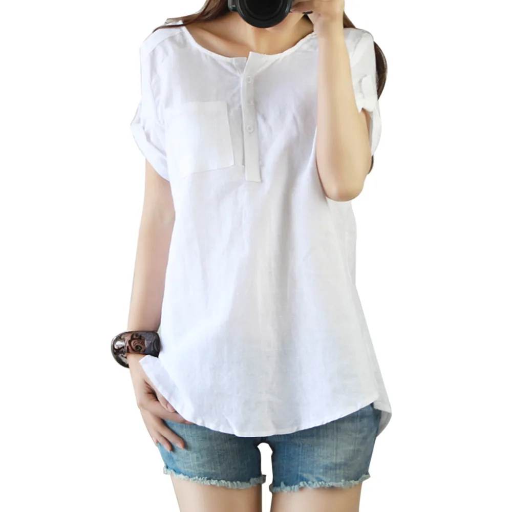 2016 женская летняя футболка Мягкое хлопковое полотно футболка отложной с коротким рукавом Простой Топ карьера льняные Топы Бесплатная доставка US $6,13