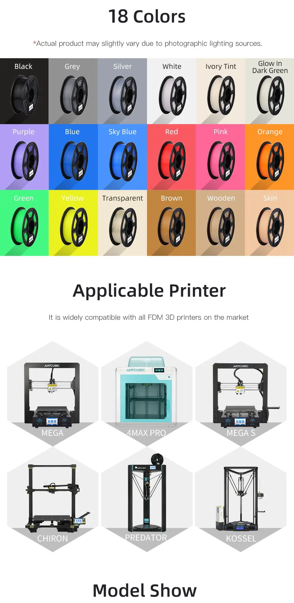 ANYCUBIC PLA нити 1,75 мм Пластик 3D-принтеры 1 кг/рулон 18 Цвета опционально резиновая расходных материалов Материал для печати