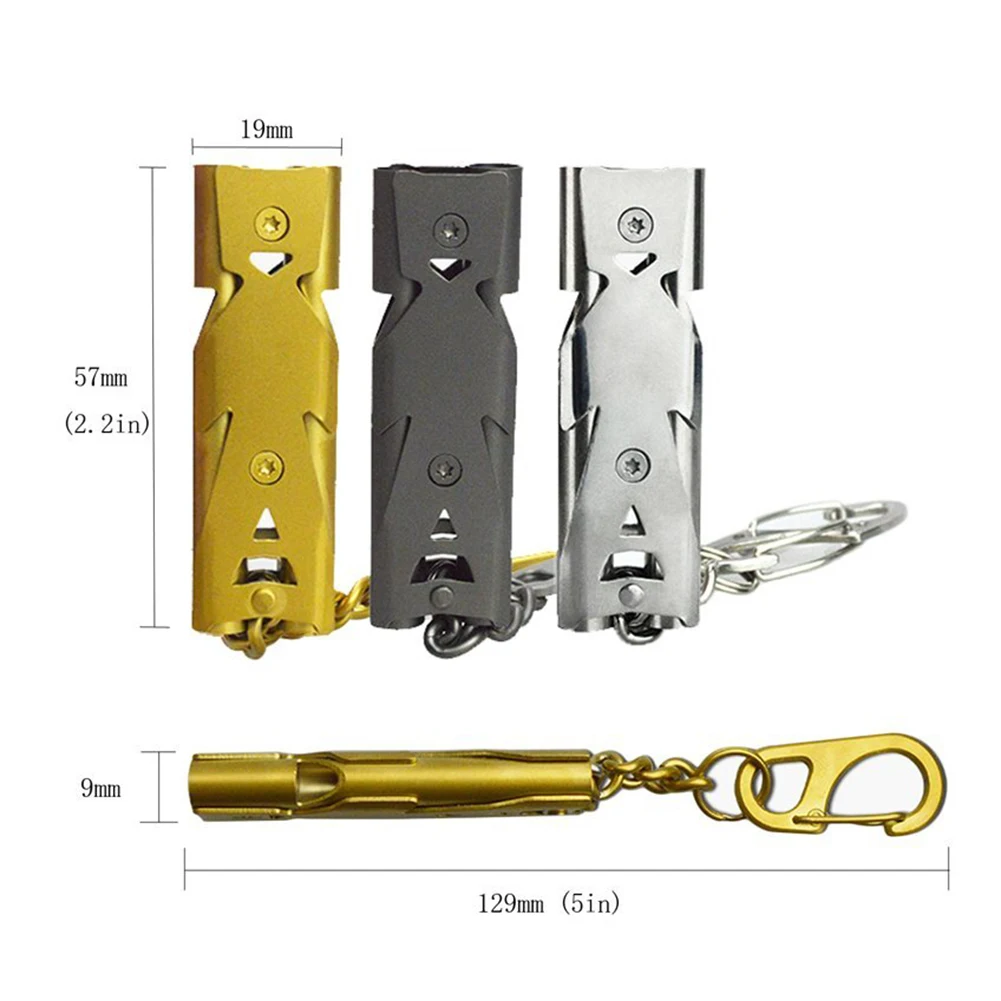 Металлический спасательный свисток из нержавеющей стали для выживания на открытом воздухе для кемпинга аварийный свисток дорожный набор Инструменты туристическое снаряжение Описание: Цвет: золотистый, оригинальный, серый материал: нержавеющая сталь Размер: 57*19*9 мм и 58*27*9 мм Вес: 27 г и 32 г характеристики: 1. высокое качество пищевой нержавеющей стали, прочный и цвет не выцветает 2. высокочастотный, простой в использовании 3. заклепка, чтобы зафиксировать и сделать его более стабильным 4. уникальный дизайн с кольцом для ключей, можно повесить на сумку или ремень посылка включает в себя: 1 * свисток из нержавеющей стали для кемпинга