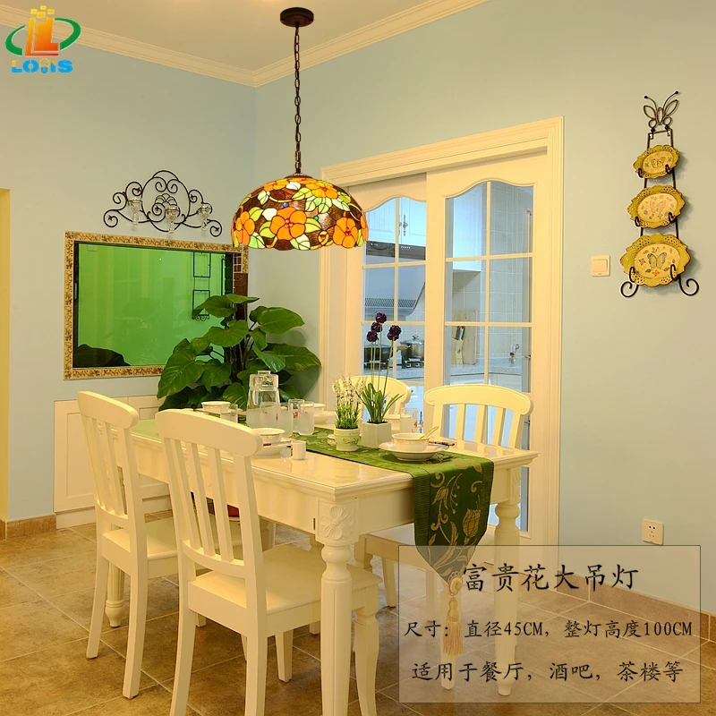 Описание ребенка: Модель: 8017156 Характеристики: Диаметр Тени 18 дюймов [45 см] Вся высота лампы: 100 см Длина висячей цепи 80 см (регулируемая длина) Материал: Витражные античные металлические детали + черная высокотемпературная линия Процесс: процесс ручной пайки сварных Тиффани Источник: 3 * E27 лампы накаливания или энергосберегающие лампы Применение: столовая, кабинет, кухня