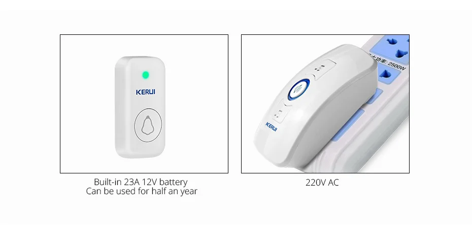 F15 & F52 кнопка дверного звонка водонепроницаемый уровень до IP66, вы можете положить его на наружную стену. И низкое энергопотребление, можно использовать около одного года, если нажимать в среднем 10 раз в день.