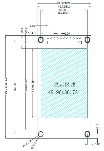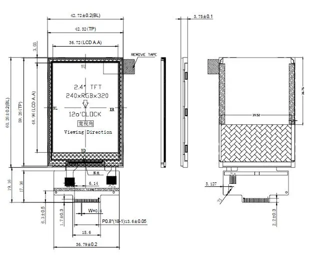 Габаритные размеры: 42,72*60,26*3,75 +/-0,1 мм (FPC не входит в комплект)