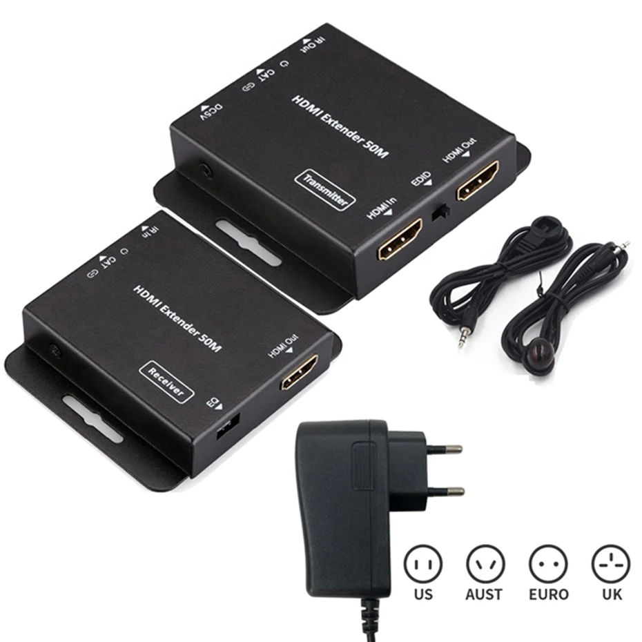 Это высокого качества, совместимому с HDMI удлинитель для головок обеспечивает 1080P, совместимому с HDMI сигнал до 50 м/165ft over single квалифицированных CAT6 сетевой кабель, он поддерживает ИК-передача сигнала для дистанционного cotrol Источник устройства, встроенный HDMI совместимых с петлей из мультфильма «Холодное сердце» местный дисплей, без потерь качества и автоматической регулировки в соответствии с кабелем длиной CAT6.