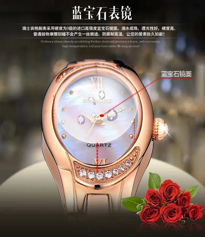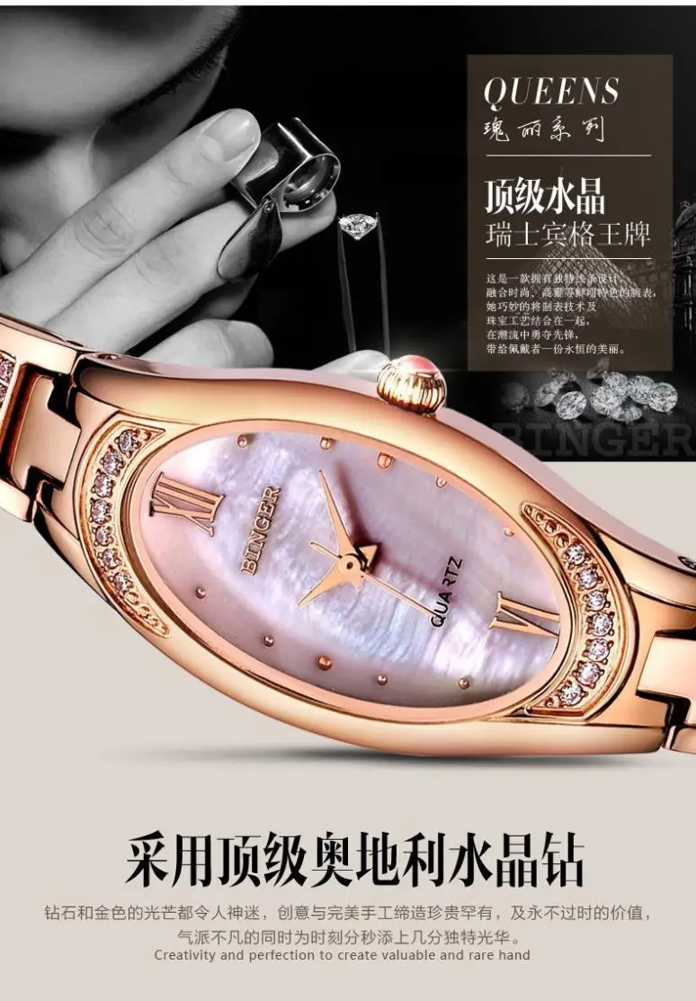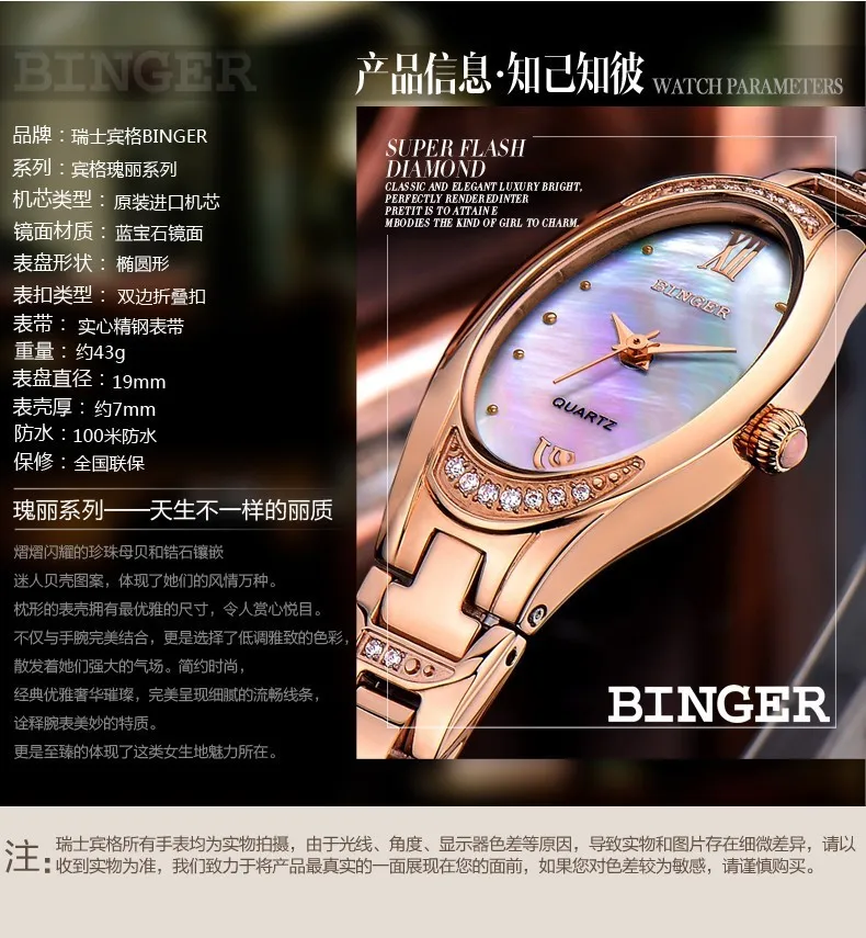 Бренд: BINGER Движение:Кварцевый механизм Состав металла:Нержавеющая сталь 316L Кристалл: сапфир Размеры чехла: 22 мм диам Тип ремешка: Нержавеющая сталь 316L Посылка: Накрыть пузырчатой пленкой и упаковать в подарочную коробку бингера. Вместе с английской инструкцией. Внешняя коробка также покрыта пузырчатой пленкой. Мы обещаем, что часы не будут повреждены при транспортировке. 12-месячная гарантия