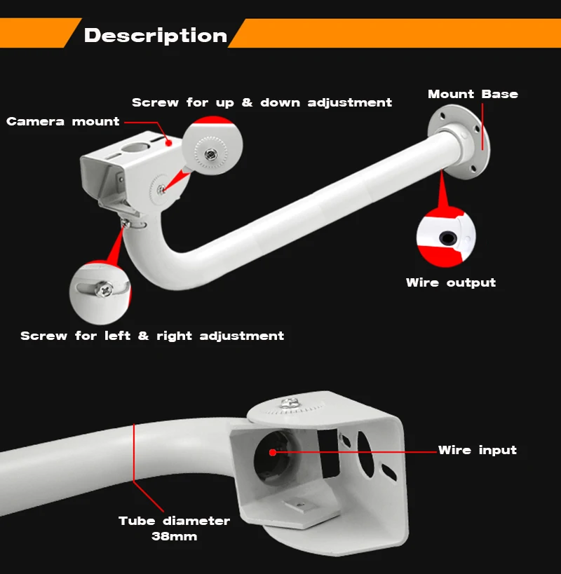Настенный кронштейн для камеры видеонаблюдения в форме трубок 60 см, утолщенный Универсальный кронштейн из алюминиевого сплава, L-образное уличное крепление