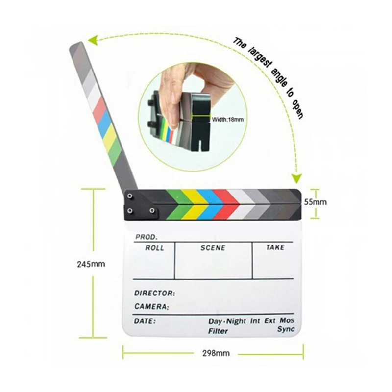 Примечание: цвет изделия может незначительно отличаться из-за фотографии и вашего собственного компьютераОсобенности:Эта доска-накладка станет отличным украшением/опорой для голливудских вечеринок.Вы можете написать на нем мелом, который легко вытереть.Отличный товар для запоминания фильмов, будь то энтузиасты кино или любительский кинопроизводитель и т. Д.Отлично подходит для ролевых игр, редактирования, видеосъемки, фильмов, фотосъемки и многого другого.Красивый реалистичный стильНадпись с гравировкойБолты в палочках можно регулировать при необходимостиЦвет: цвет насыщенныйМатериал: акрилClapperboard (inc палочки): прибл. 30x24,5 см/11,8x9,65 ""Вес: 485 гПосылка включает:1 x Clapperboard950, цифровые SLR K-7,K20D,K200D,K2000,DS,DS2,Ni kon Coolpix S4000.