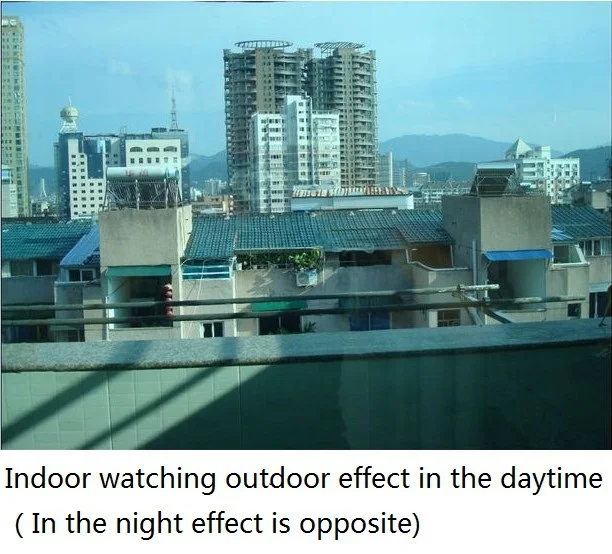 1. Это односторонняя зеркальная пленка. Сам по себе прозрачный, эффект конфиденциальности зависит от контрастности светильник