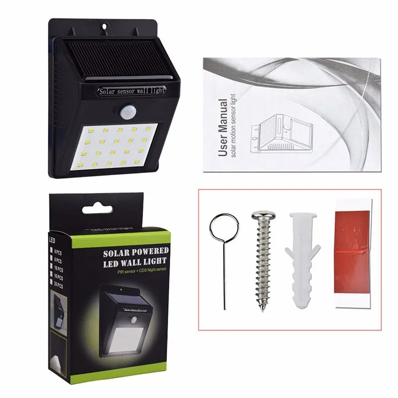 Настенный светильник на солнечных батареях, супер яркий 20 LED датчик движения, детектор света, бра, водонепроницаемый наружный сад, патио, траектория, настенное крепление, желоб, забор, безопасная лампа