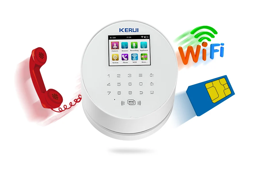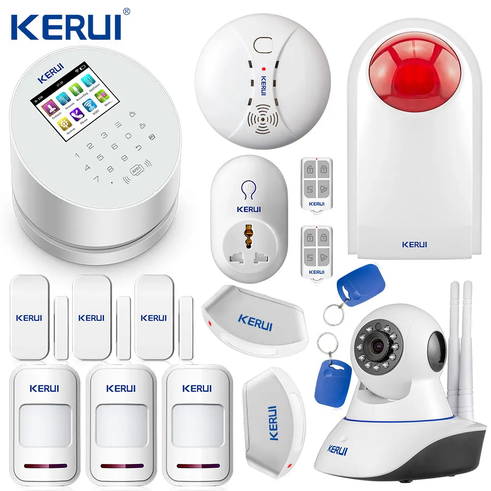 KERUI W2 WiFi GSM PSTN RFID 2,4 дюймов TFT Цвет Дисплей домашняя охранная сигнализация Системы HD 720P Wi-Fi IP Камера детектор дыма