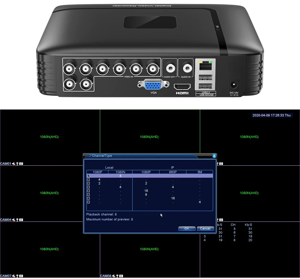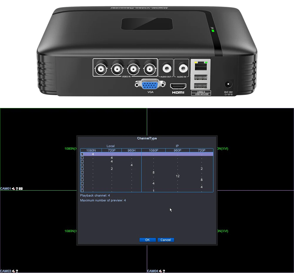 4CH Поддержка Max IP 1080P камера Поддержка камеры AHD1080P, изображение будет 1080N 8-канальная Поддержка камеры Max IP 5MP Поддержка 4CH AHD1080P камеры, 8CH 1080N камеры, 16CH 1080P камеры