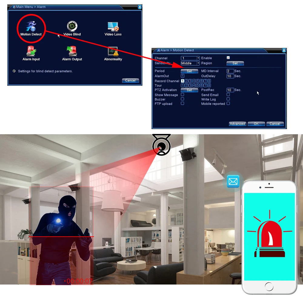 При обнаружении движения видеорегистратор может отправить электронное письмо или начать запись на жесткий диск, не пропуская каких-либо важных событий.