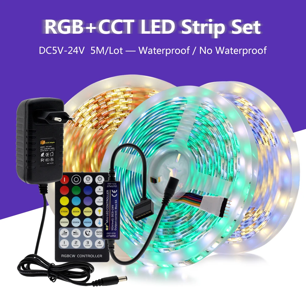 LED Strip Warm White + Cold White + RGB SetLED Strip Light + RF Remote Controller + DC12V Power Adapter
