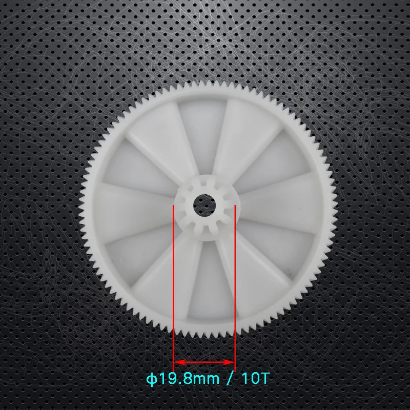 Материал: помпон Посылка содержит 1 шестерню Зубы: 103/10 Малый диаметр шестерни: 18,7 мм Большой диаметр шестерни: 97,4 мм Диаметр отверстия: 7,0 мм Высота: 33,4 мм