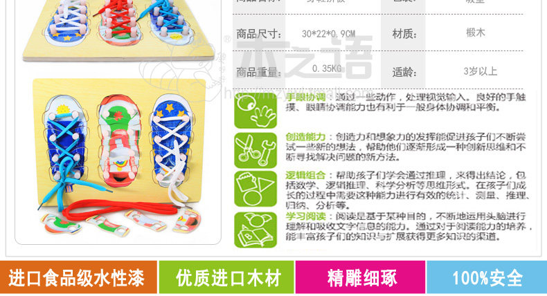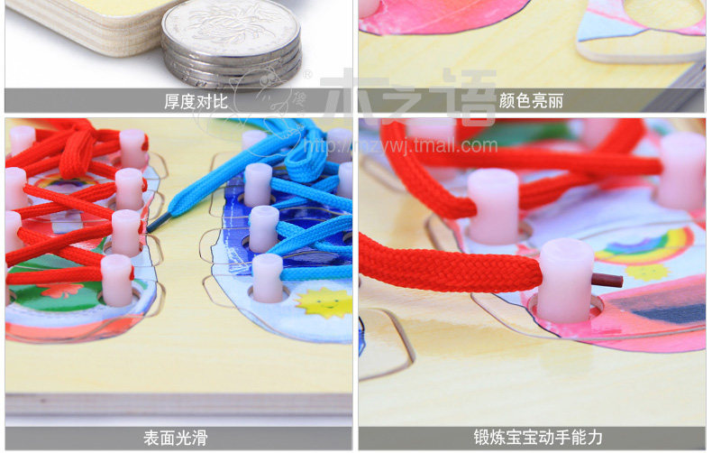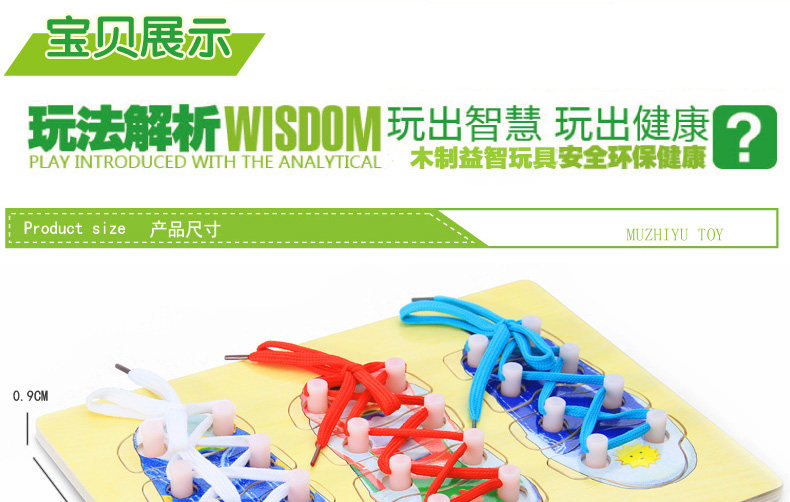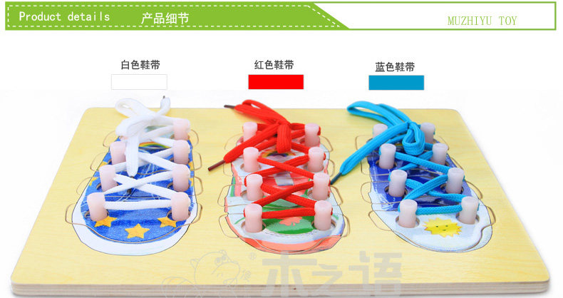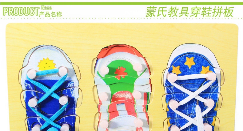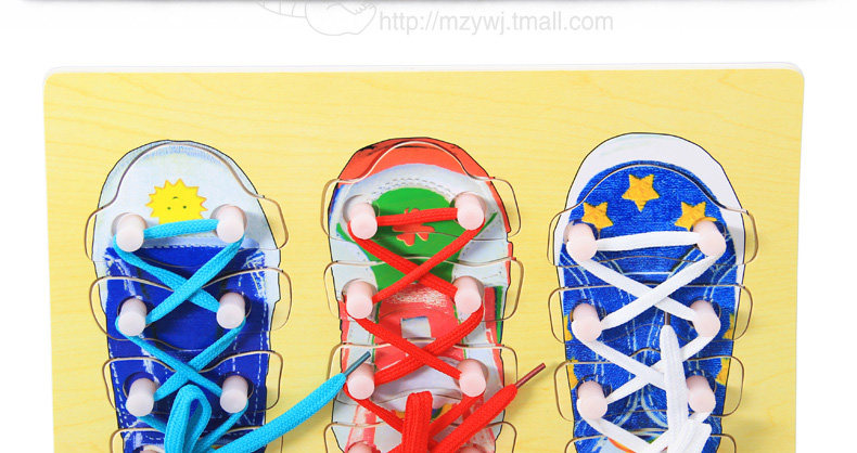 Деревянная игрушка для малышей, подарок на день рождения, милая разноцветная деревянная обувь, ручная работа, шнурки, поезд, обувь на шнуровке, игровая доска, 1 комплект