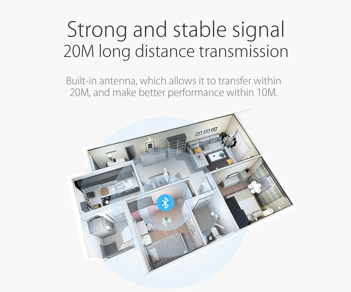 20 м безбарьерная передача, разработанная с оригинальным чипом CSR 8510, безбарьерная передача в пределах 20 м, плавное соединение.