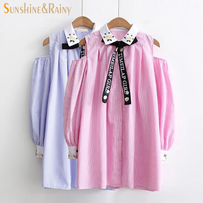 Женская длинная рубашка в полоску рубашка в стиле ретро свободное с цветочной вышивкой рубашка с длинным рукавом Повседневные женские топы с галстуком-бабочкой длинная рубашка s