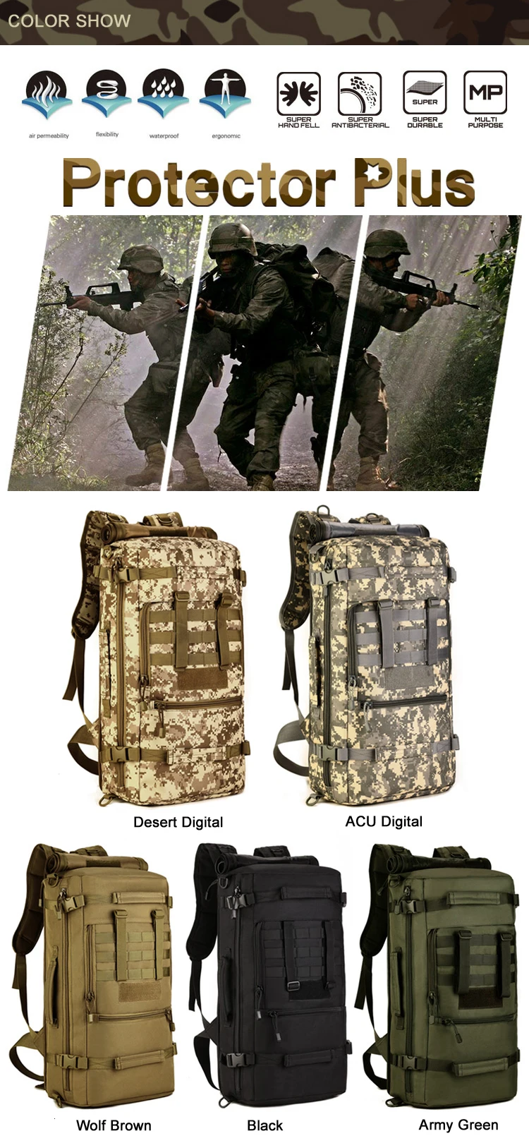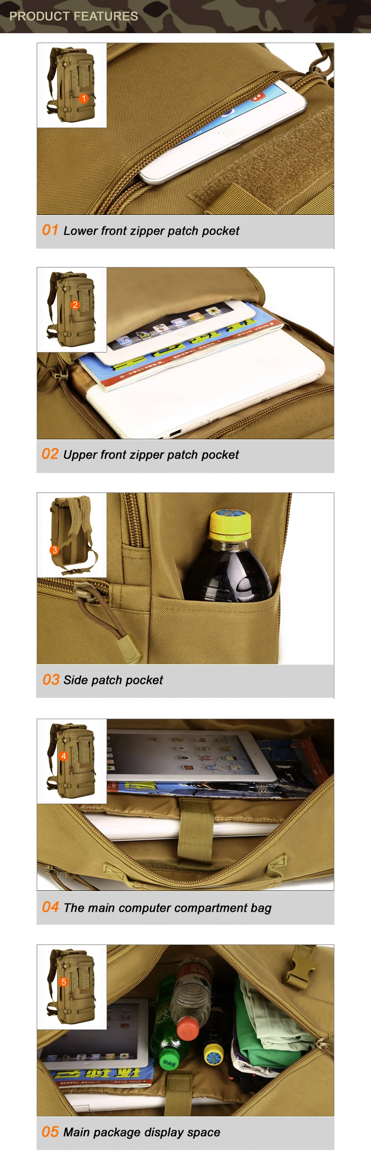 MOLLE расширения функция Широкие бретели Хорошо проветриваются Регулируемый поясной ремень