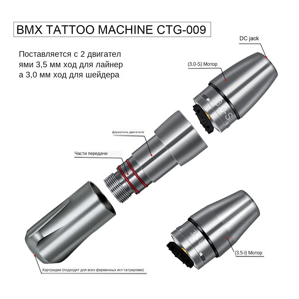 Возможность регулирования интенсивности, частоты и мощностидля для прорисовки контуров и закрашивания в соответствии с требованиями. Простота и удобство эксплуатации минимизирует повреждения кожи. Мощный мотор с высокой и стабильной производительностью. Высокие стандарты качества, не нагревается после продолжительной работы. Креативный и стильный дизайн. Описания Две различные съёмные насадки (3.0 лайнер и 3,5 шейдер )для удовлетворения ваших потребностей более всеобъемлющим образом Характеристики: Материал: алюминиевый сплав Скорость: макс. 10000 оборотов в минуту Напряжение на входе: макс. 12 В Ход: 3.5 мм Мощность мотора: 4.5W Игла: Картриджи с иглами Цвет: Как показано на картинке Комплектация: 1 x инструмент для татуирования с 2 насадками, 1 шнур РЕКОМЕНДАЦИИ: Biomaser может обеспечить оптовую и прямую доставку по усмотрению клиента, OEM-сервис и настройка также возможны по запросу.
