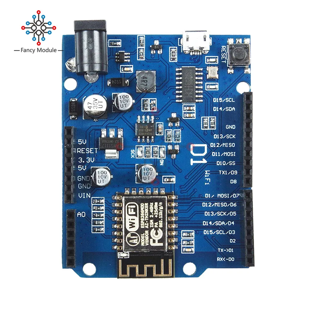 Описание: Исходя из ESP-8266EX Для Arduino совместим, используется для Arduino IDE для программирования 11 контактов ввода/вывода 1 x ADC pin (входной диапазон 0-3,3 В) Поддержка OTA беспроводной загрузки Бортовой 5V 1A импульсный источник питания (Наивысшее входное напряжение 24V) После установки аппаратной посылка, прямое использование для разработки Arduino IDE, то же самое для Arduino UNO Посылка включает в себя: 1 * OTA WeMos D1 CH340 CH340G WiFi макетная плата ESP8266 ESP-12 ESP-12E модуль для Arduino IDE UNO R3 Micro USB ONE 3,3 v 5v 1A