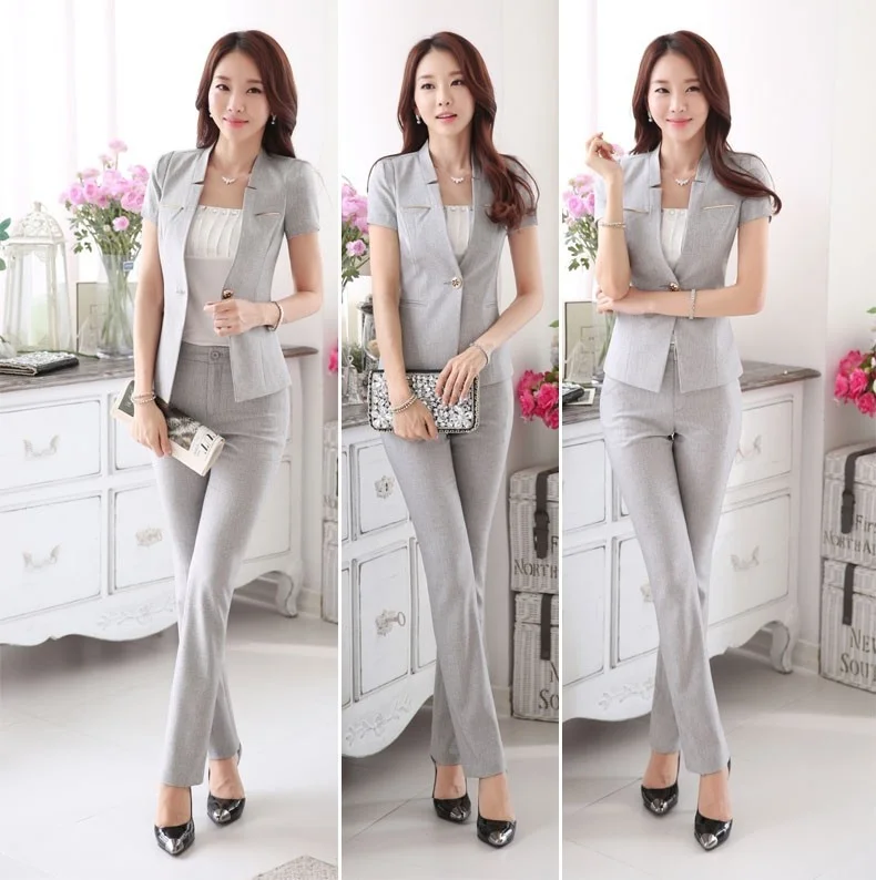 Модные женские рабочие костюмы(Блейзер + брюки) Элегантный, формальный стиль для офисных дам Цвет: серый Китайский Размер: S M L XL XXL XXXL Материал: блейзер