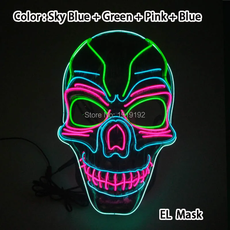 EL wire маска светильник неоновая светодиодный маска для Хэллоуина завтра land scary косплей маски для вечеринки 3V устойчивый на драйвер