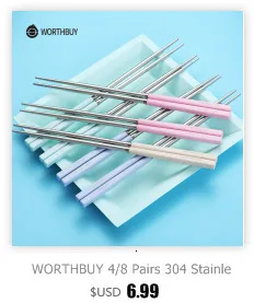 WORTHBUY 8 пар китайские палочки для еды набор 304 палочки из нержавеющей стали с ручкой из пшеничной соломы пищевые палочки для суши Хаши