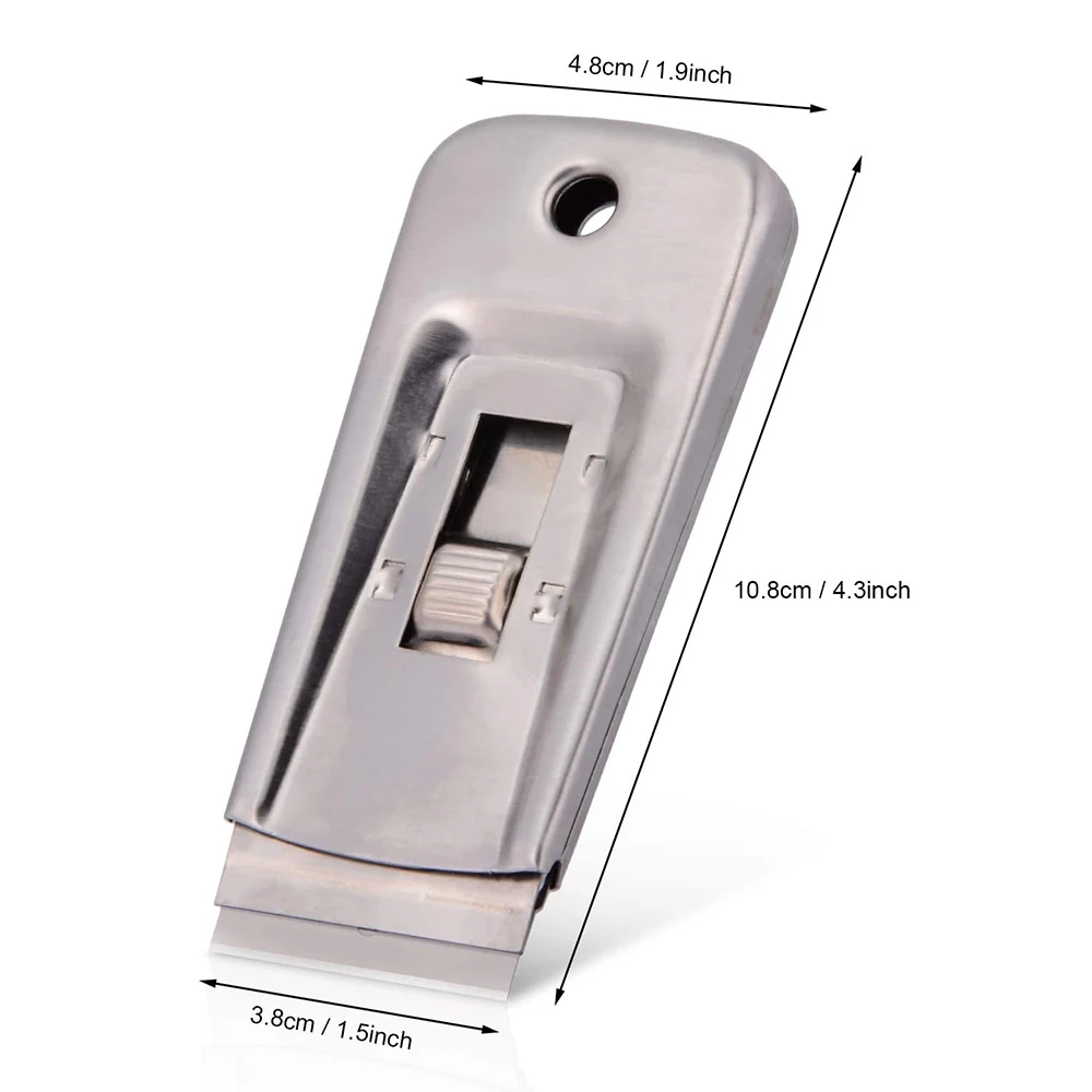 Продукт: нержавеющая выдвижное лезвие скребок Размер: 10,8x4,8 см Лезвие: лезвие бритвы 1,5 дюйма Применение: windnow пленка Чистая, клей и старая грязная Чистка... Specificaiton: Это мощное выдвижное лезвие скребок использует лезвия бритвы с одной окантовкой. Он отлично подходит для безопасности, прочности сцепления и максимального рычага, где требуются небольшие лезвия для удаления пленки или других загрязняющих веществ из стекла.