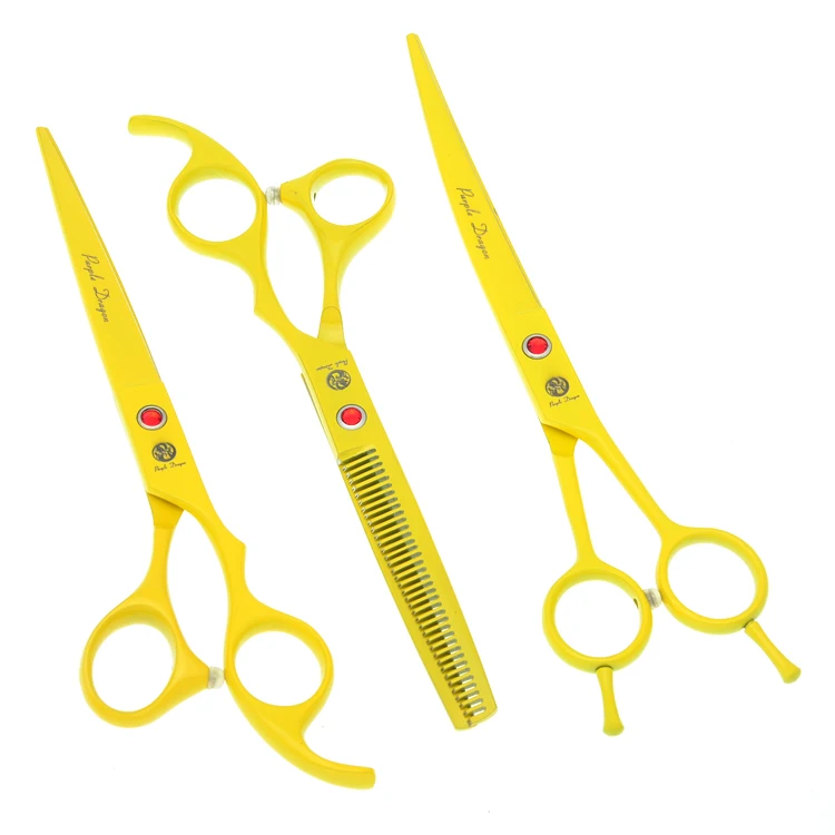 7,0 "Япония 440C профессиональные ножницы для ухода за домашними животными набор окрашенных собачьих ножниц прямые и филировочные и изогнутые ножницы LZS0358