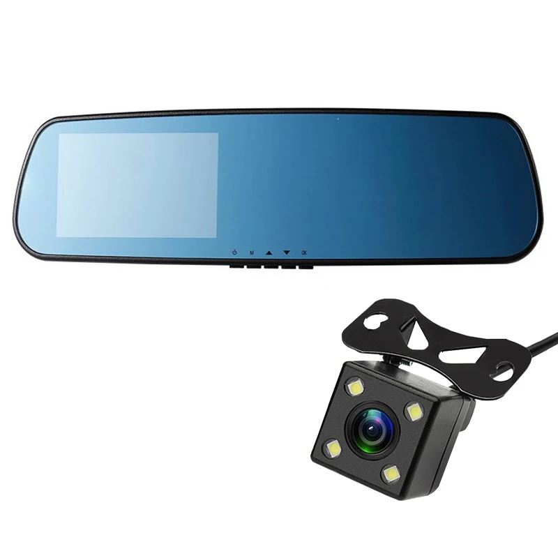 4,3 дюймовый ЖК-дисплей + Синий Зеркальный дизайн + FHD 1080 P + Угол обзора 140 градусов