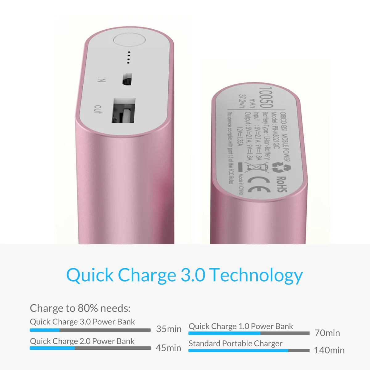 ORICO Power Bank Быстрая зарядка QC3.0 быстрое зарядное устройство Внешний аккумулятор 10000 мАч для iphone Xiaomi сотовый телефон