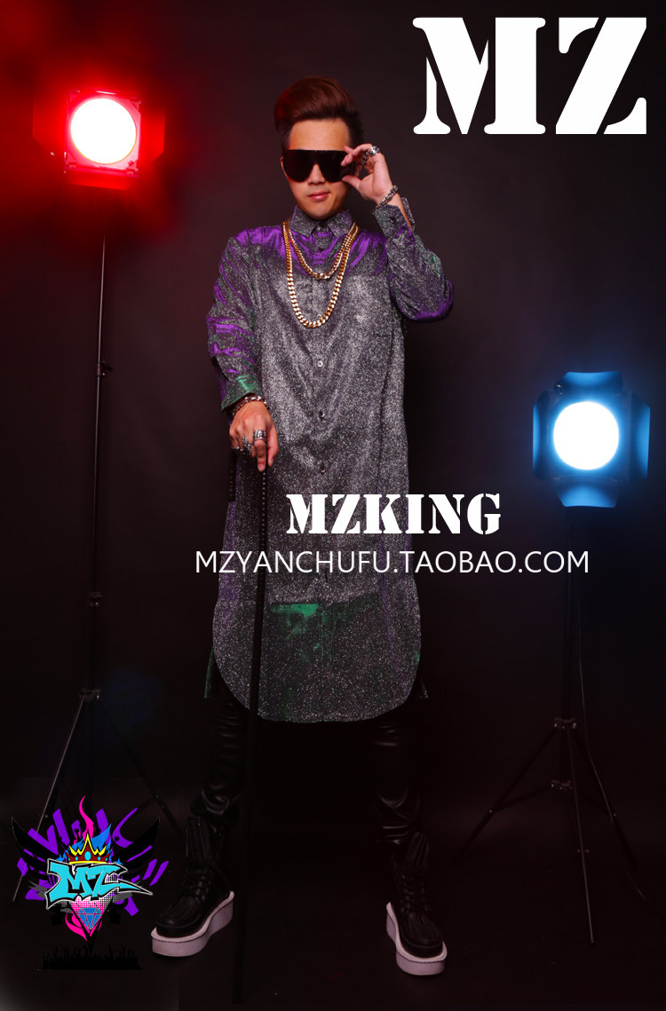 Бесплатная доставка Мужская певица зеленый и фиолетовый градиент вспышки порошок Тип Длинные рубашки костюмы/S-XL