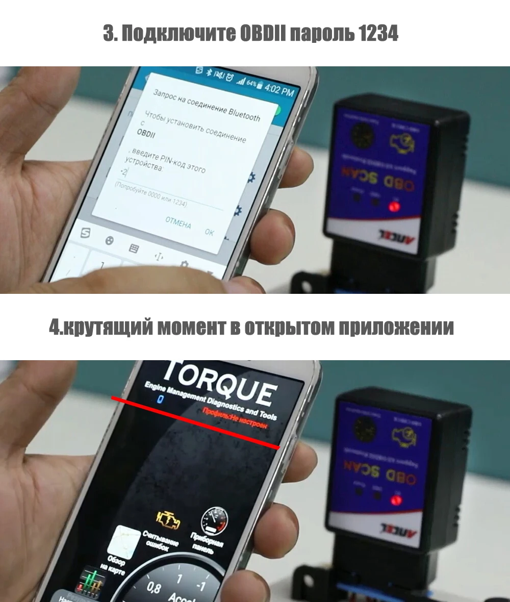 1 * Ancel ELM327 Bluetooth V1.5 1 * Руководство пользователя