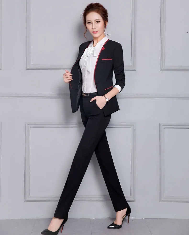 100% Новый бренд Форма для женщин Офисные женские деловые костюмы(Блейзер + брюки) Цвет: черный, серый Материал: блейзер+ Хлопок Китайский Размер: S, M, L, XL, XXL, XXL, XXXL