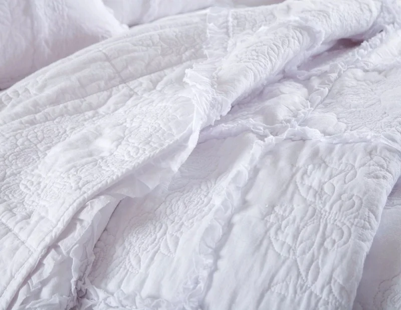 Белое хлопковое стеганое одеяло, комплект из 3 предметов, постельные принадлежности, покрывало с вышивкой, покрывало для кровати King Queen, покрывало с 2 шамами