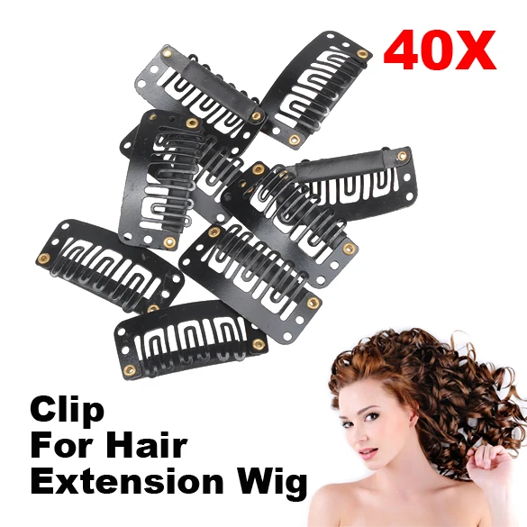 40 шт. заколка для наращивания волос среднего и черного цвета Инструменты для укладки волос Уток клипса 32 мм u-образный зажим высокого качества