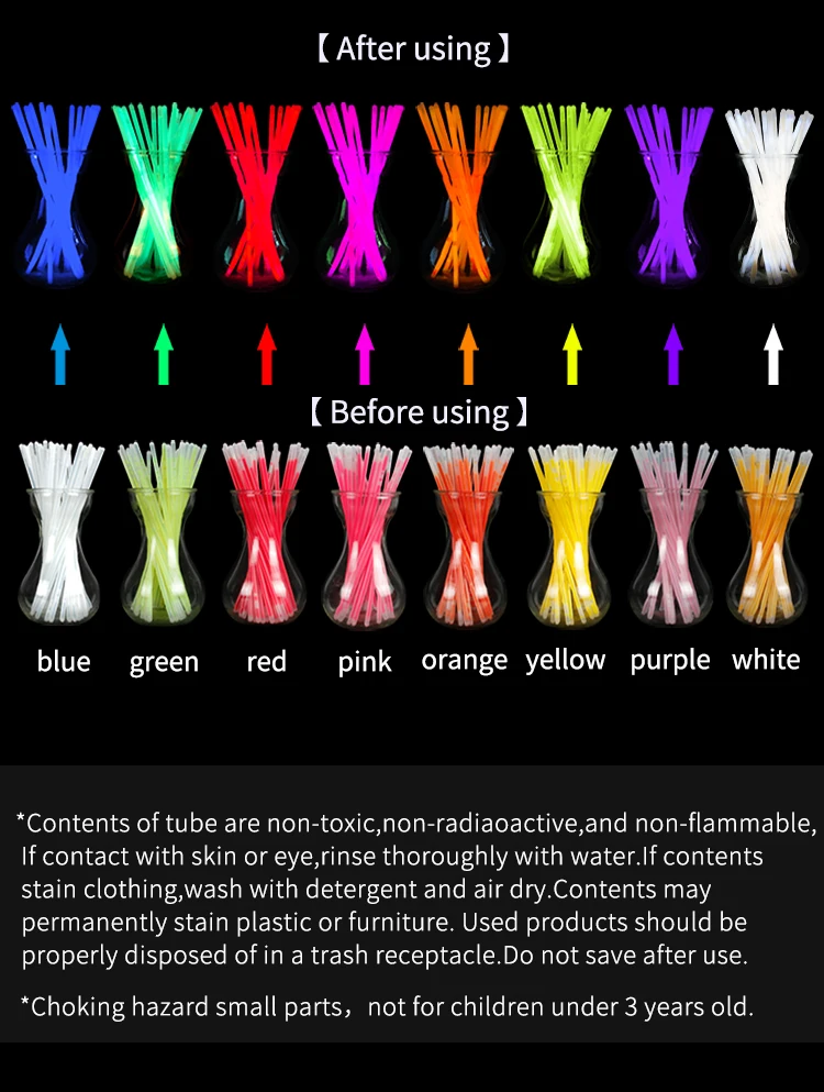 100% новый и высокое качествоКак только они начнут светиться, светящиеся браслеты прослужат Вам всю ночь.Они будут светиться очень ярко в течение 8 часов, они начнут выцветать, но могут продолжать излучать какой-то светильник до 12 часов ..Внутри светящихся клещевых браслетов два химических вещества, которые излучают светильник или светятся, когда они смешиваются вместе.Внутри светящихся клещевых браслетов Тонкая Стеклянная трубка, когда вы сгибаете ее в первый раз, вы сломаете внутреннюю стеклянную трубку.Это смешивает два химических вещества вместе. Просто встряхните его и presto, он начинает светиться как магия.Они не радиоактивны и не воспламеняются. Почти никогда не открываются, но если они это сделают, химикаты внутри могут быть смыты с кожи и одежды с обычным мылом или моющим средством.Подходит для Хэллоуина, Нового года, церкви/школы fundraisers, ванной игрушки для детей, вечеринок, свадеб, бар mitzvahs.Поставляется с соединителями, поэтому вы можете подключить концы вместе, чтобы сделать браслеты и ожерелья, или более стиль.Размеры: 20 см x 0,5 см x 0,5 см.Цвет: разноцветный