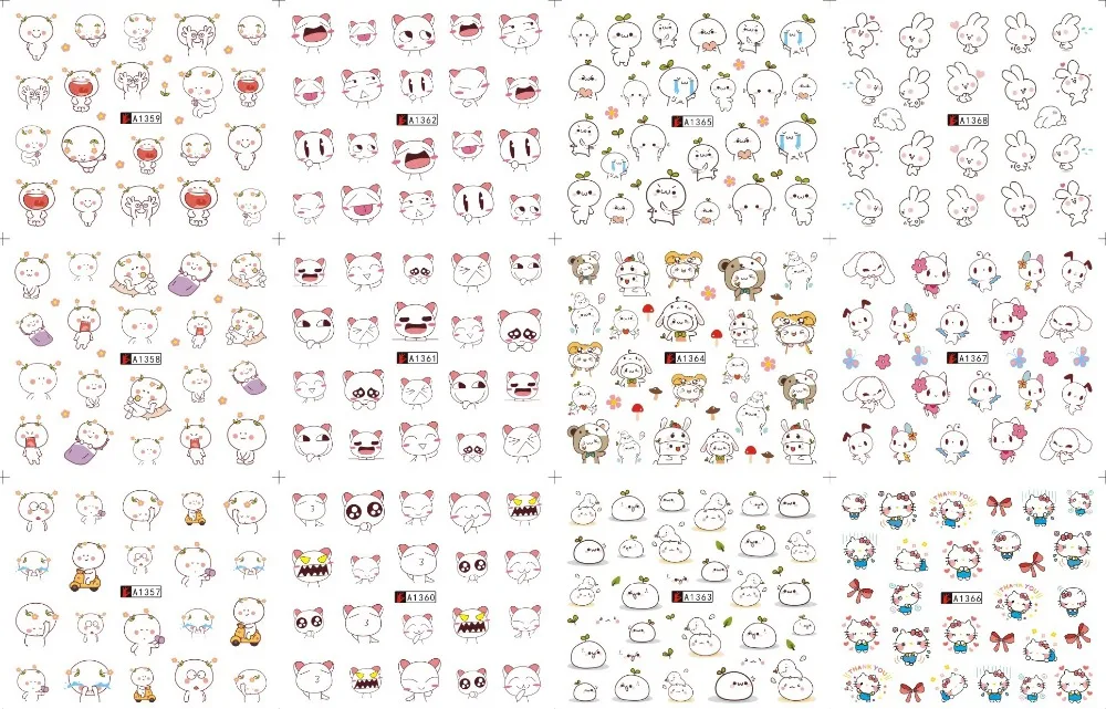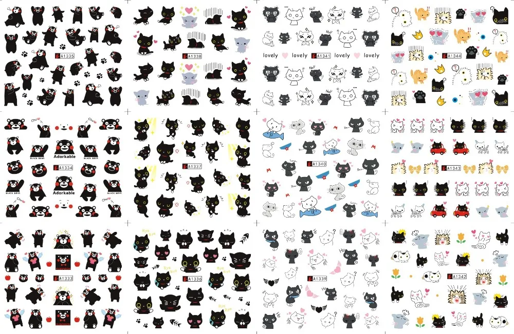 Посылка:12 листов (12 различных дизайнов) A361-A384-это мультяшная мышь, а A769-792-мультяшная кошка